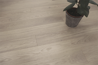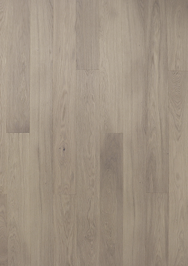 Доска из дуба, обработанная щеткой и покрытая матовым лаком. Естественные узоры и умеренные вариации оттенков древесины подчеркивают натуральность продукта.