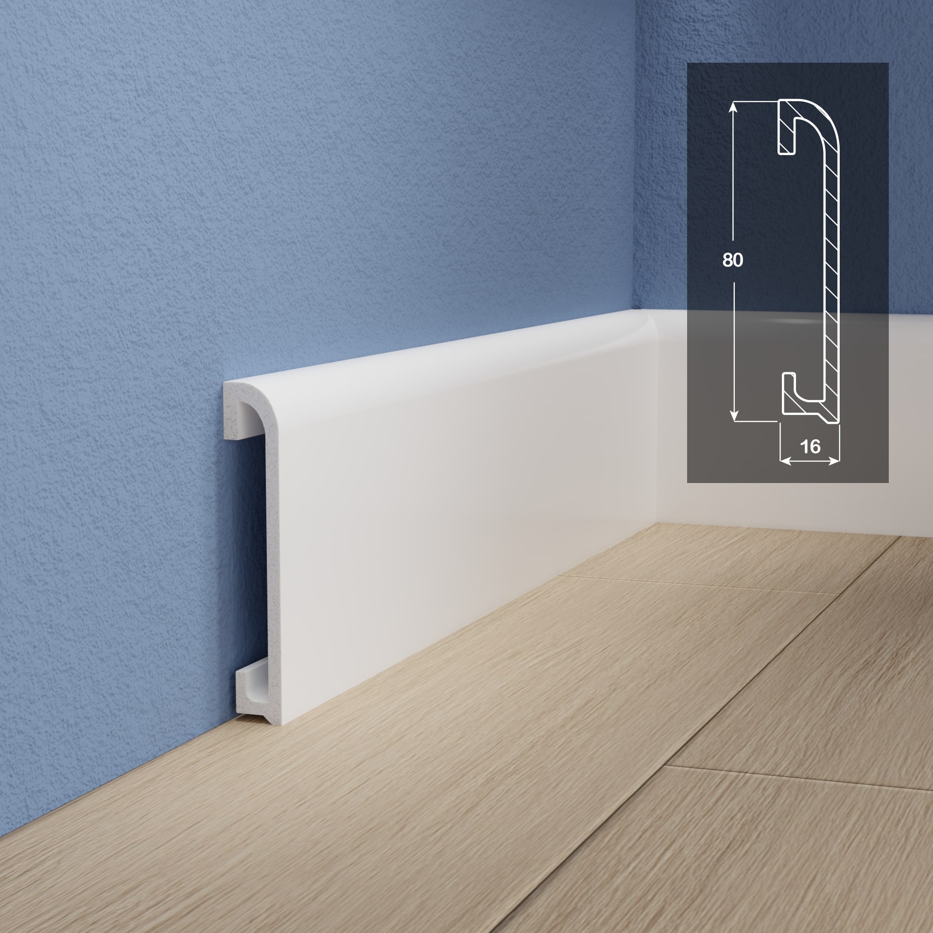 Материал абсолютно безопасен для здоровья: не выделяет вредных веществ и полностью пригоден для утилизации. При производстве плинтуса не используются токсичные соединения, что делает его экологичным и безопасным для дома.
