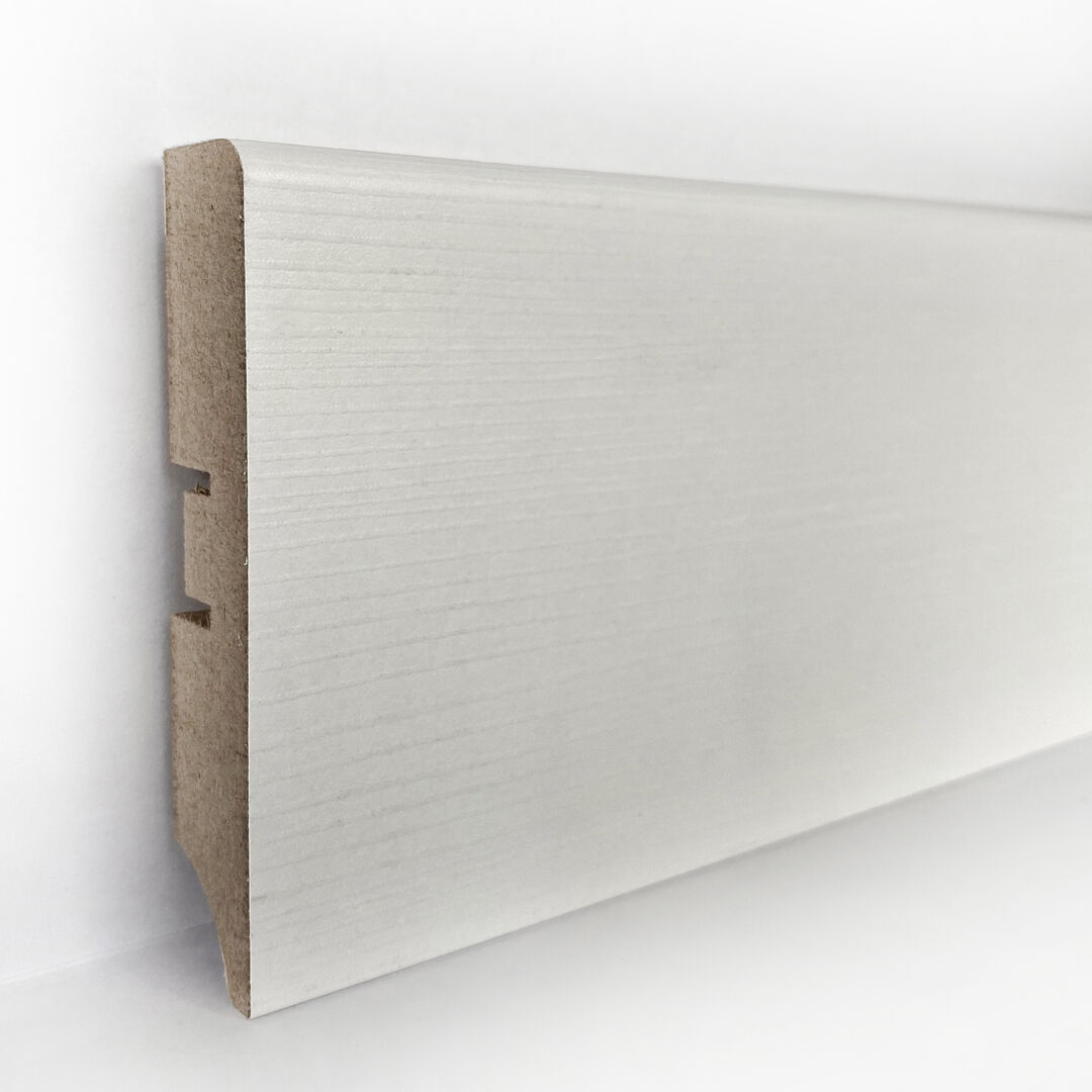 Плинтус выполнен из плиты МДФ и покрыт мебельной финиш-пленкой, которая не требует дополнительной обработки. Пленка защищает плинтус от влаги и загрязнений. Качество и надежность подтверждены европейскими и российскими стандартами производства.