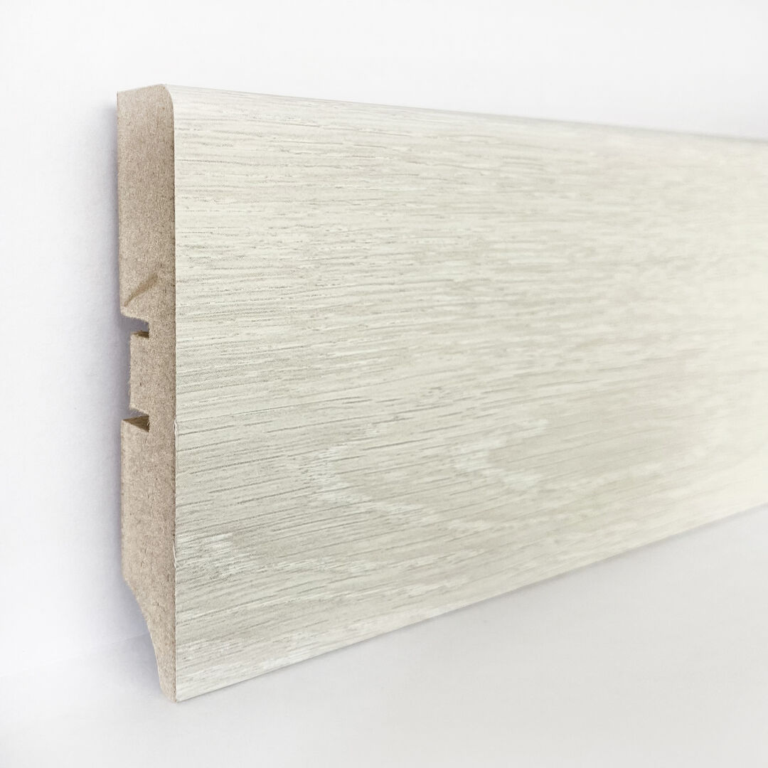 Плинтус выполнен из плиты МДФ и покрыт мебельной финиш-пленкой, которая не требует дополнительной обработки. Пленка защищает плинтус от влаги и загрязнений. Качество и надежность подтверждены европейскими и российскими стандартами производства.