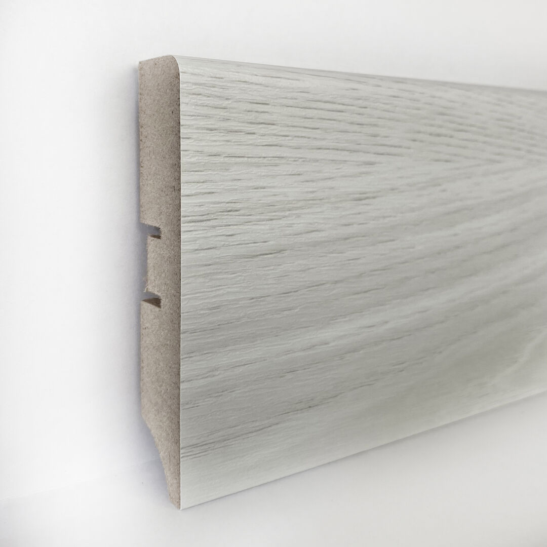 Плинтус выполнен из плиты МДФ и покрыт мебельной финиш-пленкой, которая не требует дополнительной обработки. Пленка защищает плинтус от влаги и загрязнений. Качество и надежность подтверждены европейскими и российскими стандартами производства.