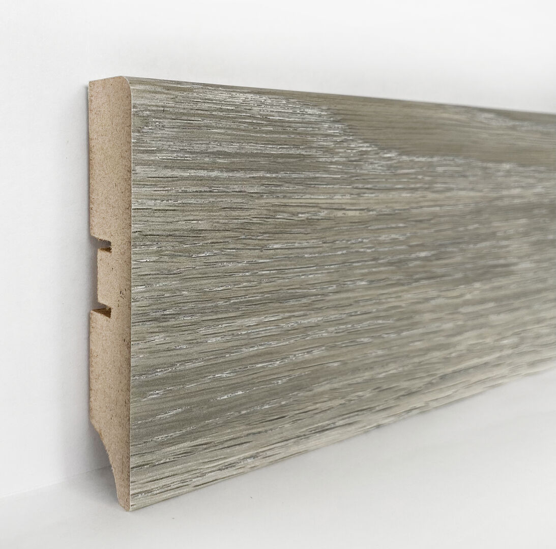 Плинтус выполнен из плиты МДФ и покрыт мебельной финиш-пленкой, которая не требует дополнительной обработки. Пленка защищает плинтус от влаги и загрязнений. Качество и надежность подтверждены европейскими и российскими стандартами производства.