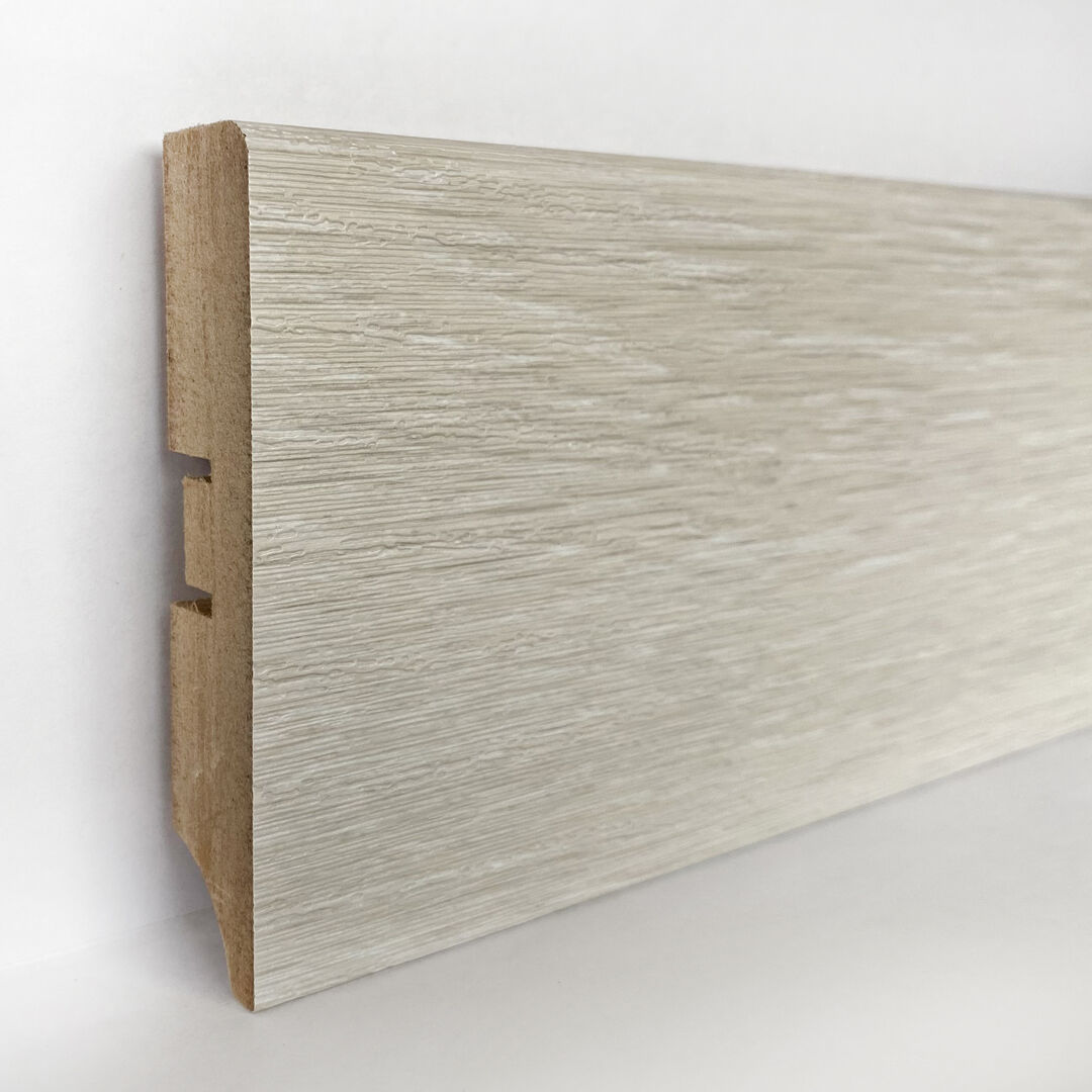 Плинтус выполнен из плиты МДФ и покрыт мебельной финиш-пленкой, которая не требует дополнительной обработки. Пленка защищает плинтус от влаги и загрязнений. Качество и надежность подтверждены европейскими и российскими стандартами производства.