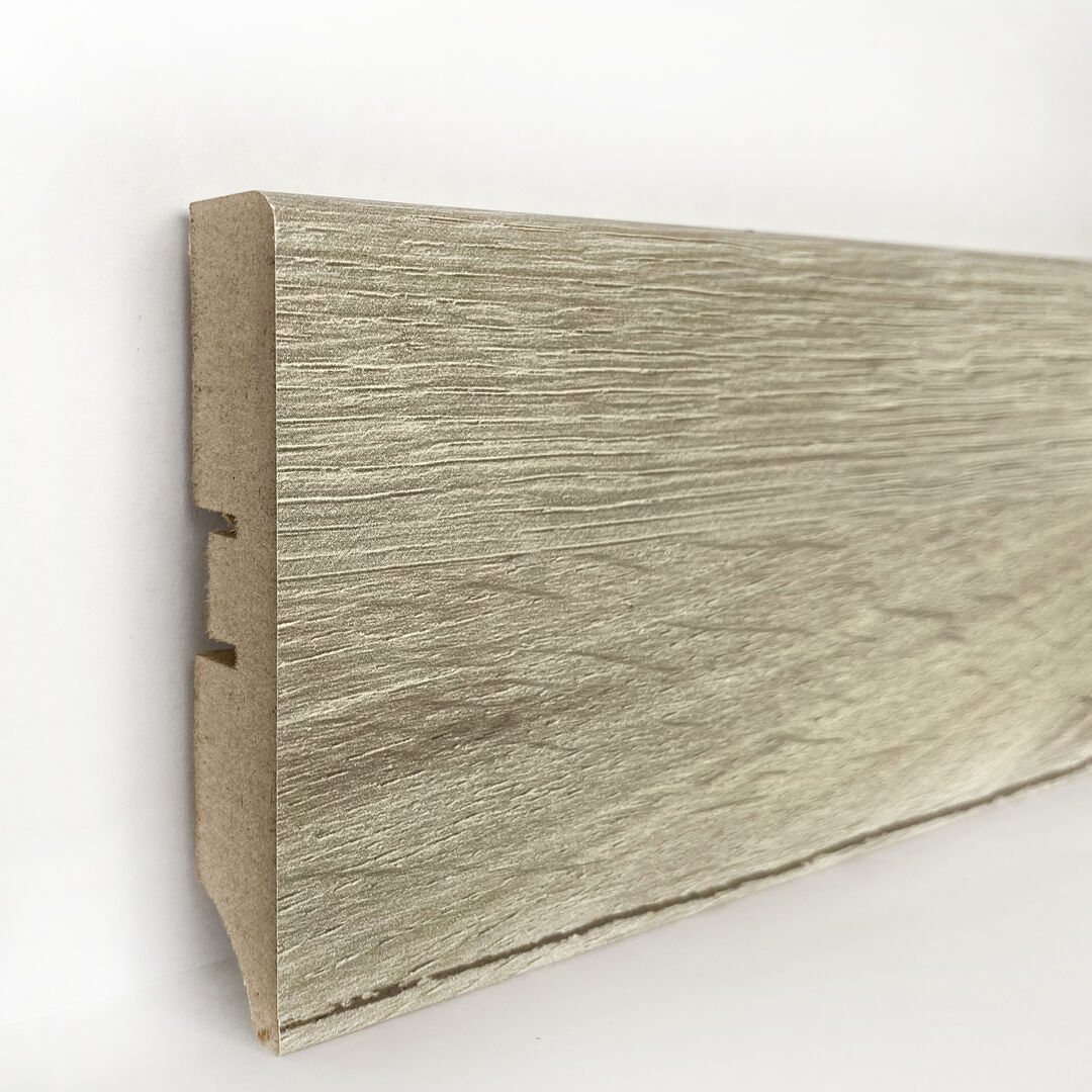Плинтус выполнен из плиты МДФ и покрыт мебельной финиш-пленкой, которая не требует дополнительной обработки. Пленка защищает плинтус от влаги и загрязнений. Качество и надежность подтверждены европейскими и российскими стандартами производства.