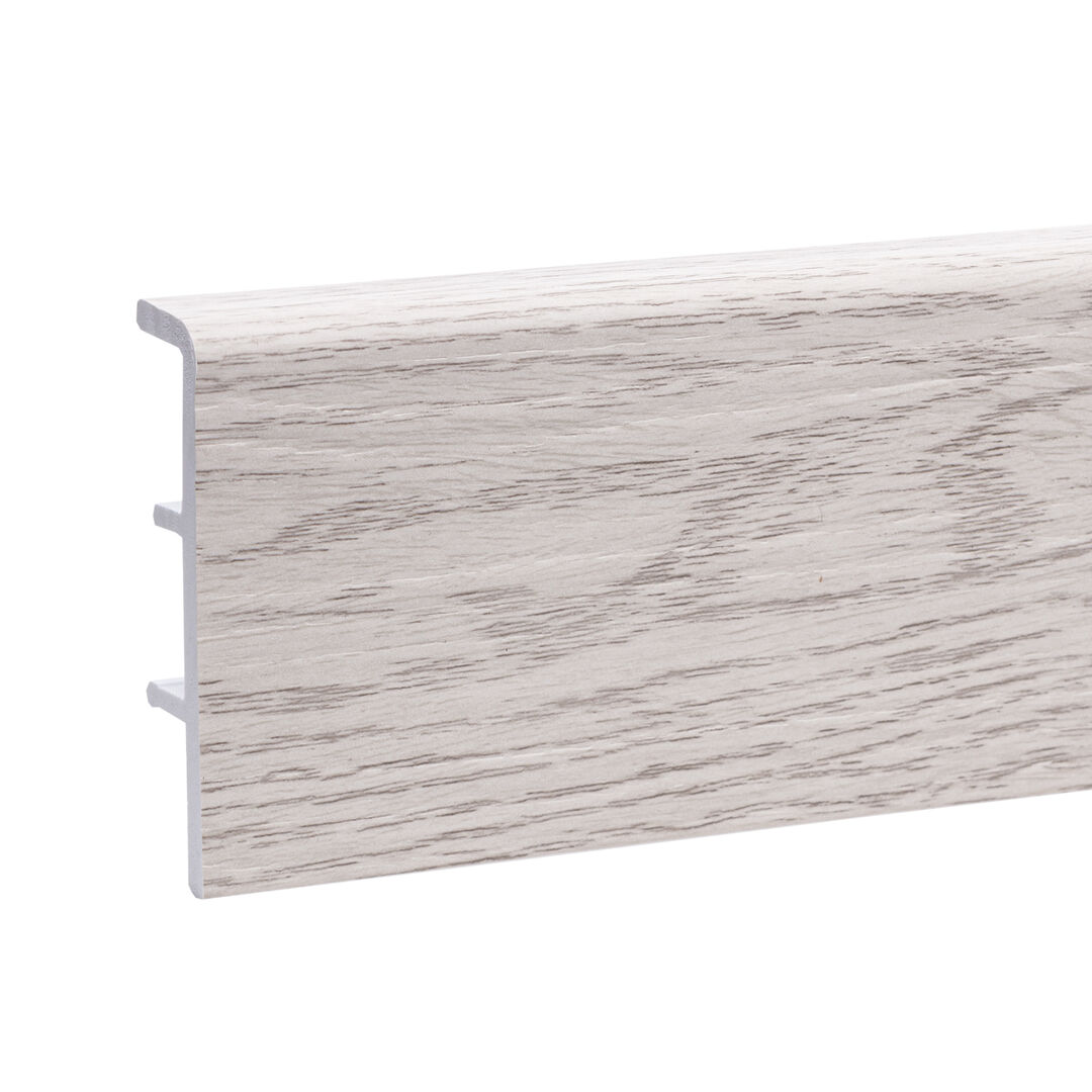 Плинтус выполнен из ударопрочного вспененного ПВХ, что делает его износостойким и позволяет устанавливать в проходных местах помещений.