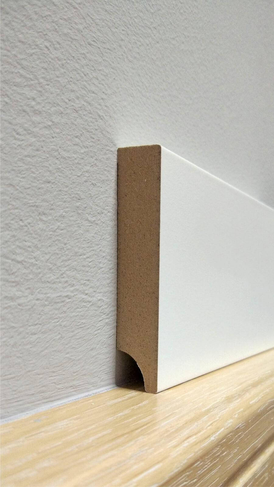 • покрытие: финишное и не требует дополнительной окраски. Однако, если вы хотите плинтусу придать другой цвет, рекомендуется использовать краски на полиуретановой либо акриловой основах, с предварительным использованием адгезионного грунта;