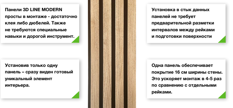 износостойкой краской. Рейки на панелях имеют инновационное покрытие с тактильным и визуальным эффектом натурального дерева ценных пород.